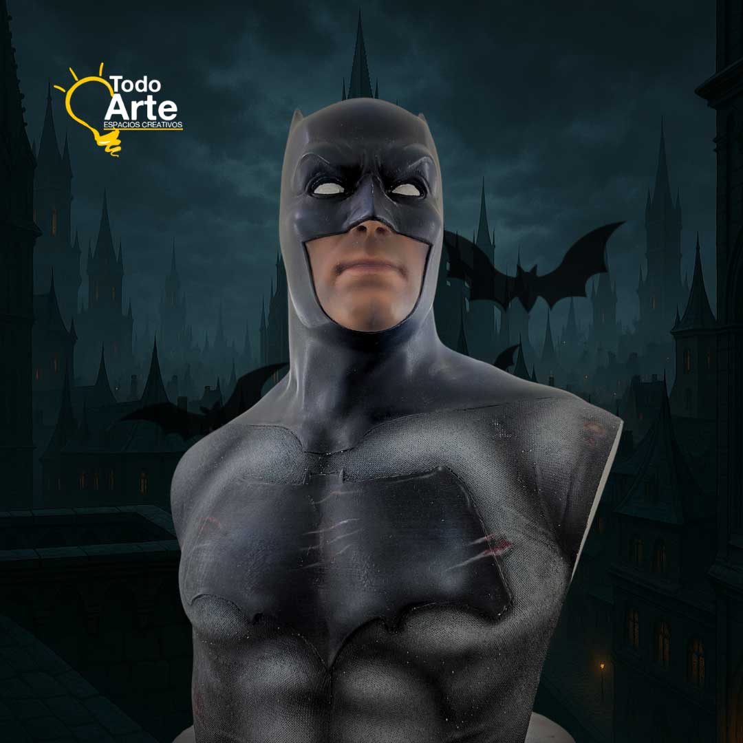 Busto de Batman hecho a mano en icopor, con detalles realistas y