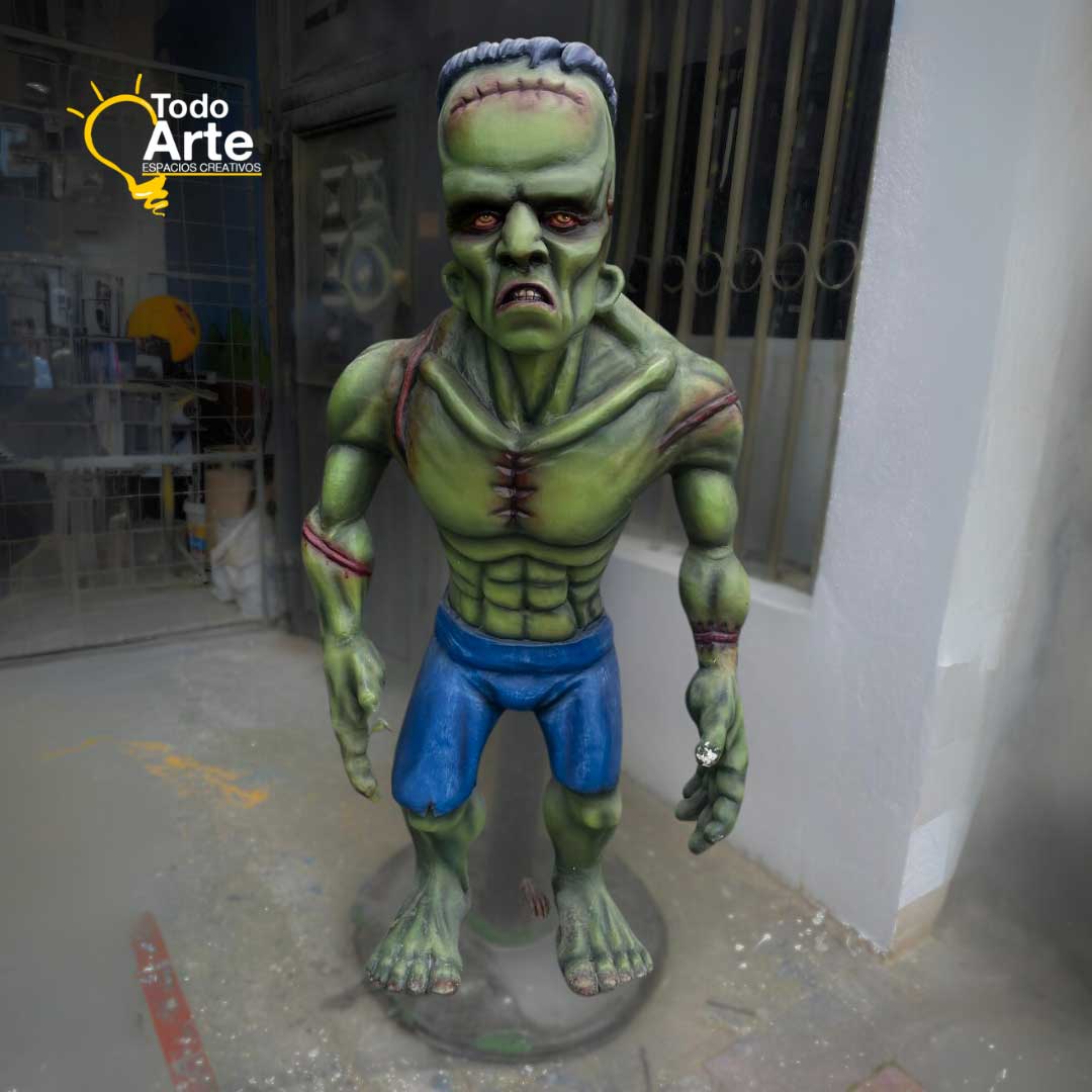 Escultura de Frankenstein estilo caricatura, hecha a mano en icopor,
