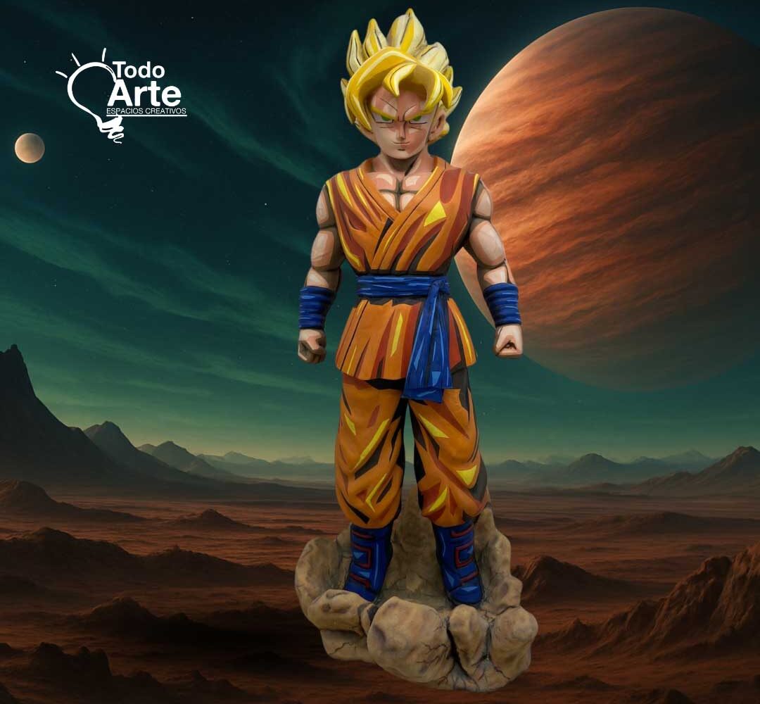 Una figura imponente que transmite poder, energía y presencia. Esta escultura de icopor representa a un guerrero en su máxima transformación, destacando por sus colores vibrantes, texturas dinámicas y un nivel de detalle que refleja fuerza y carácter. Cada trazo y acabado ha sido trabajado a mano con dedicación,...