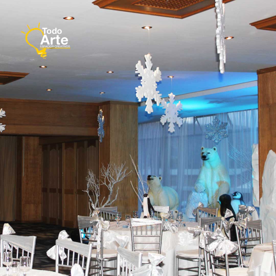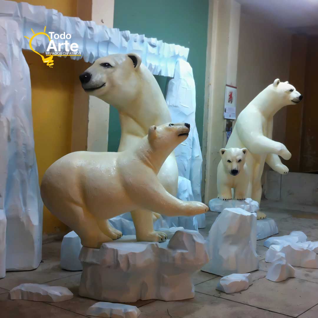 Una experiencia mágica que transporta a los invitados a un auténtico mundo helado. Nuestra escenografía temática invernal está compuesta por esculturas en icopor de pingüinos, renos, osos polares y montañas de hielo que recrean con realismo y encanto la esencia del invierno. Cada pieza es elaborada a mano por Todo Arte, cuidando cada detalle para lograr acabados sorprendentes que combinan creatividad, estética y durabilidad. Ideal para centros comerciales, celebraciones navideñas, vitrinas temáticas y eventos corporativos que desean cautivar, sorprender y crear un ambiente inolvidable para grandes y pequeños.